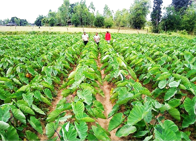 Oslyn br Pasaribu memilih pengembangan tanaman talas sebagai objek kegiatan. Produk penanaman talas, berguna atas dua hal. Pertama, daunnya diiris-iris seperti tembakau, lalu dikeringkan dan dihimpun menjadi berbentuk karungkarung dengan kualitas kontrol yang ketat. Di eksport ke luar negeri untuk dijadikan bahan obat-obatan. Kedua, tanaman diakhir periode akan panen buah talas menjadi bahan makanan, di eksport juga. Jadi, daun dan buahnya semuanya bermamfaat.
